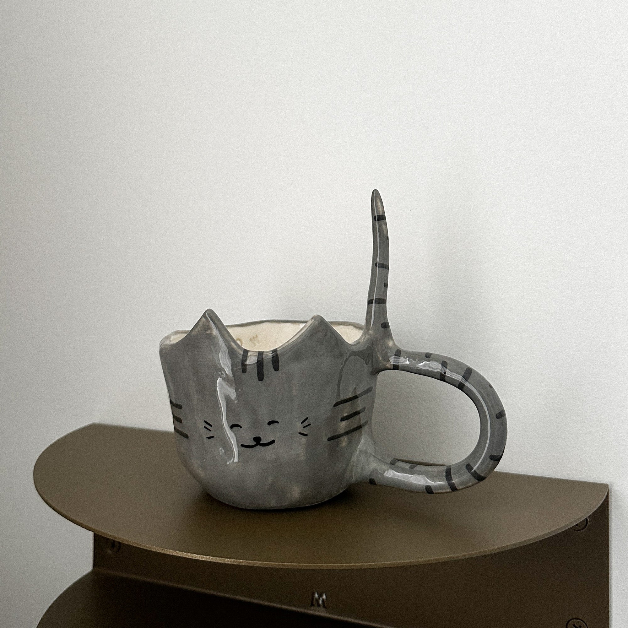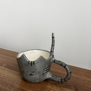 Sweet whiskered faces! Just like real cats, no two are the same. Each mug comes with it's own tiny quirks of character. They may not be purrrfect but that is what makes them special. The ideal campaign for a cosy cuppa.Kitty Cup 03 features a grey body with black feline stripes.