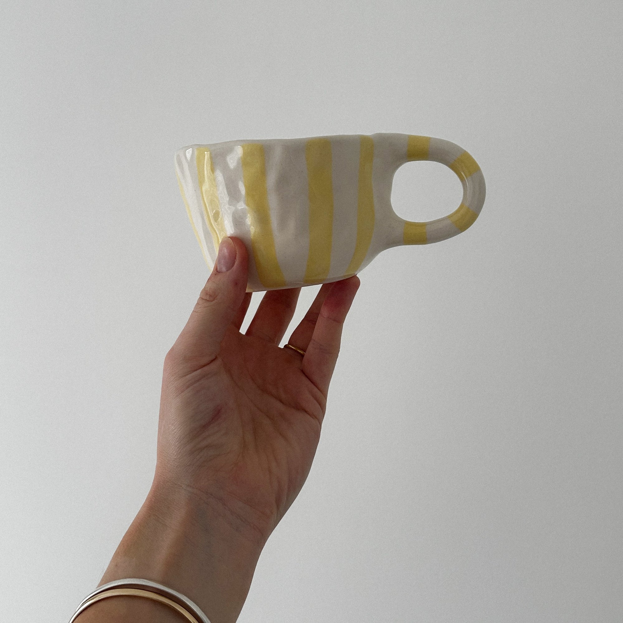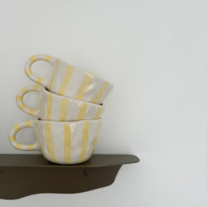 Bring a little morning sunshine to your morning ritual in the form of a mug. Sunstripe features hand painted soft yellow stripes to capture the warmth of the soon to be summer days.